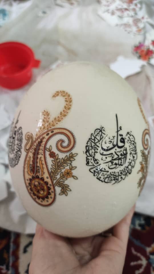 - محصولات تزئینی از پوکه تخم شتر مرغ وپر شتر مرغ