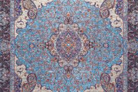 رومیزی مربع (بقچه) طرح هشت بهشت فیروزه ای